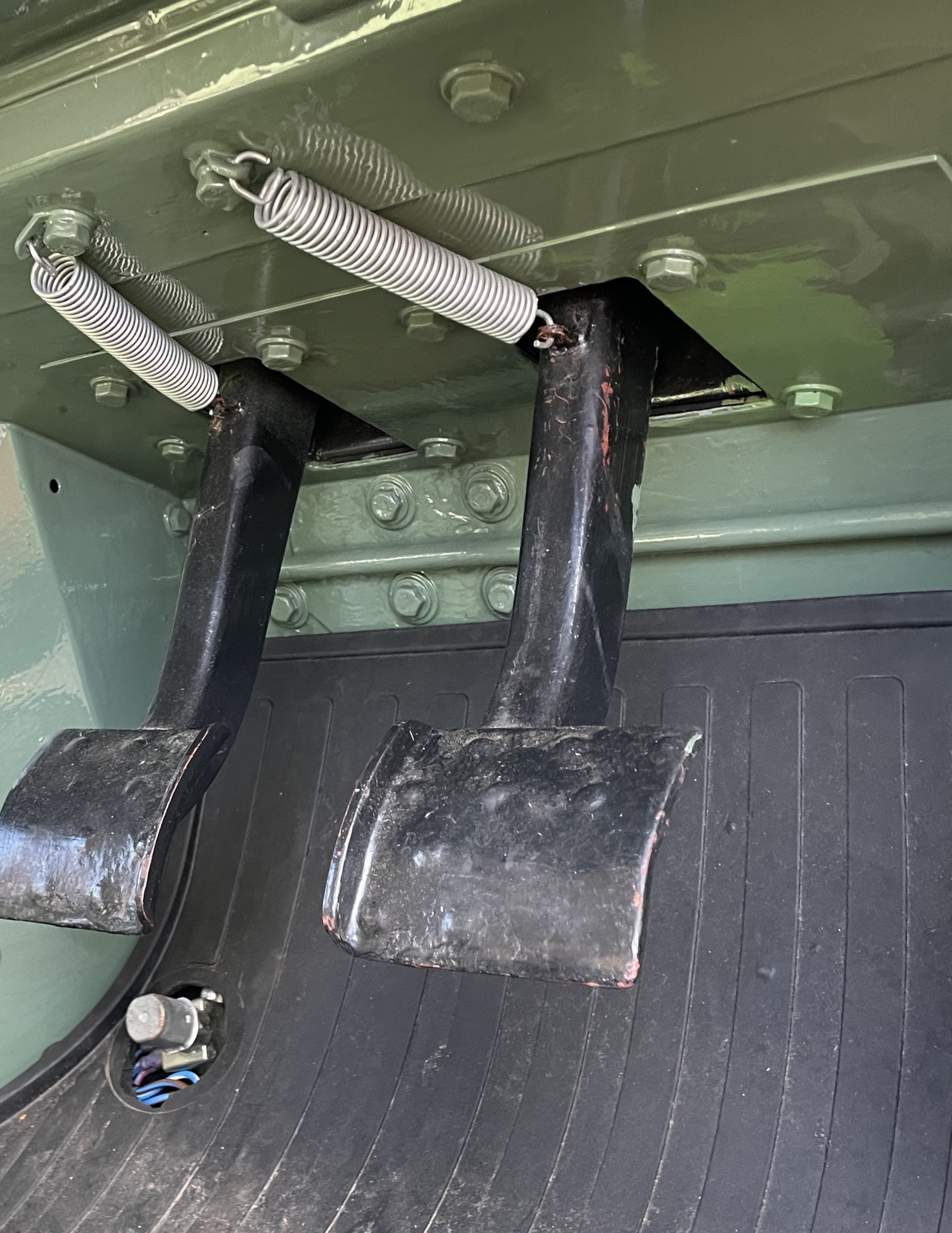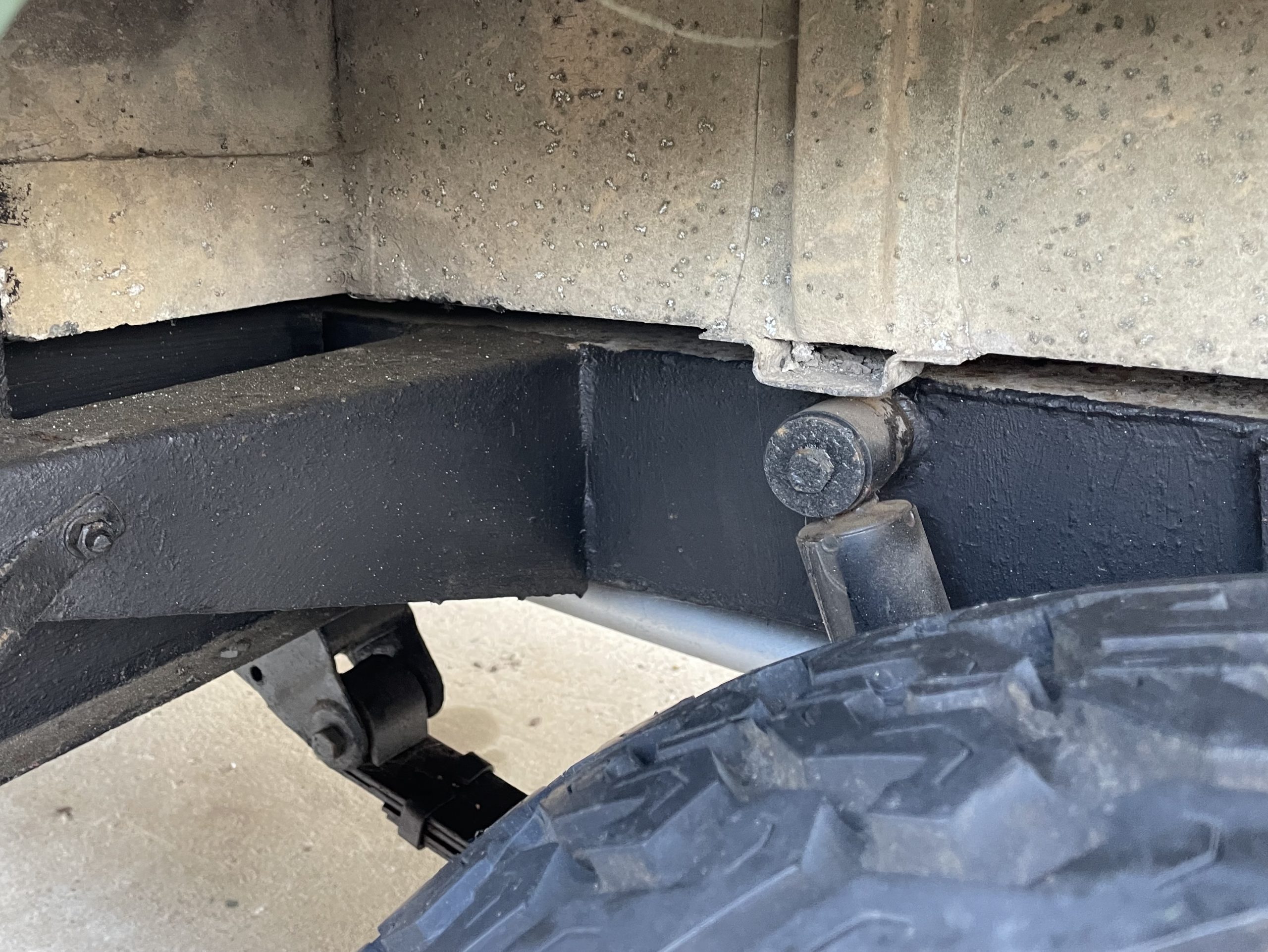 Chassis: stamped 24111515B – original, solid with some repairs by previous owners. I replaced the petrol tank and outriggers and the chassis has been cleaned and internal rustproofing applied. Two towing/lifting eyes are fitted on front bumper. All the chassis/suspension/transmission grease points have been greased and new grease nipples fitted where needed.