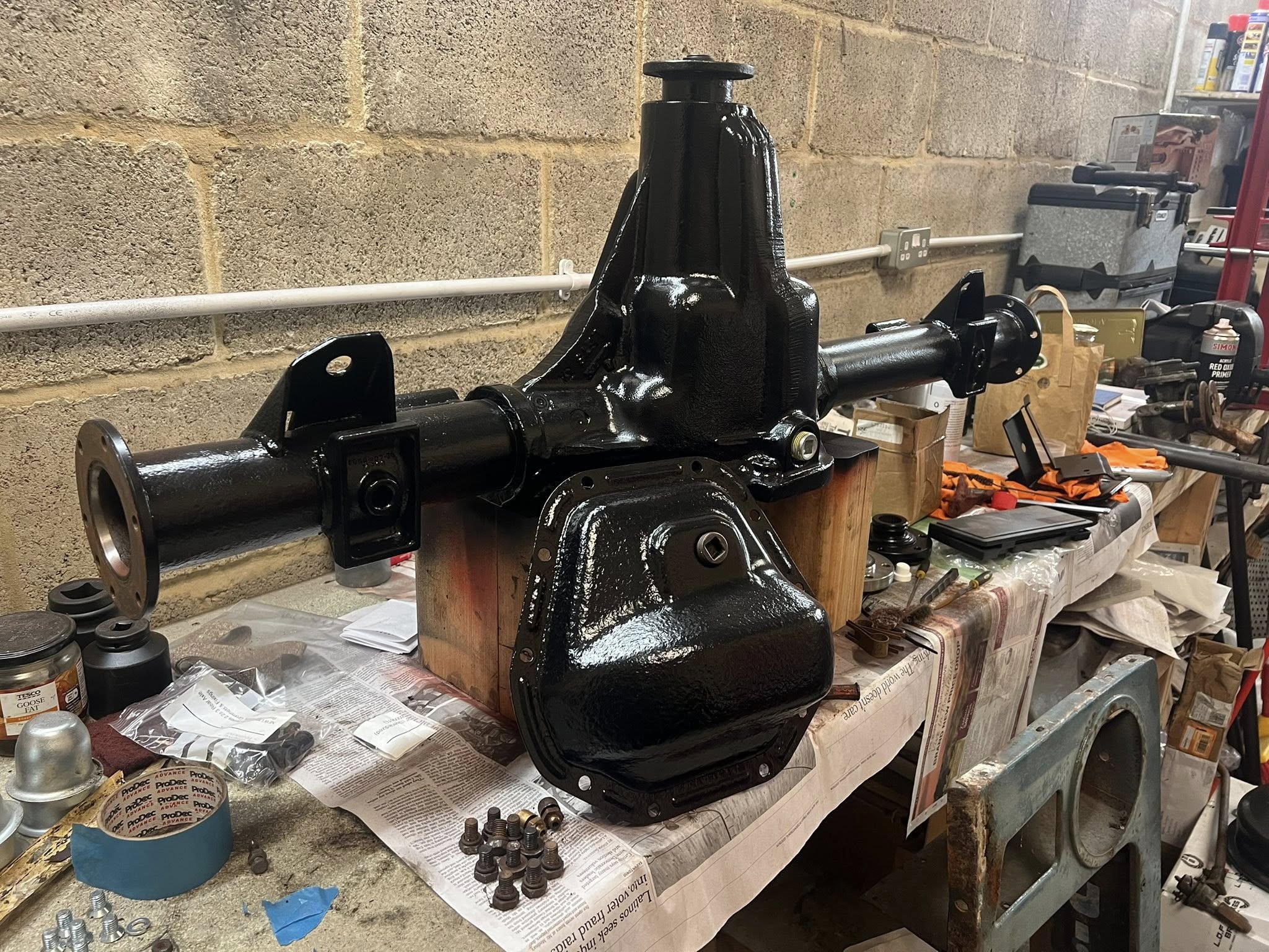 The car needs the brake lines, fuel lines and bodywork to be fitted. All the drivetrain has been overhauled by the book. The front axle has brand new swivel’s and a leather gaiters. All bearings and seals have been changed on every part of the drivetrain. Most of the parts were sandblasted and painted with red oxide then POR-15 black paint.